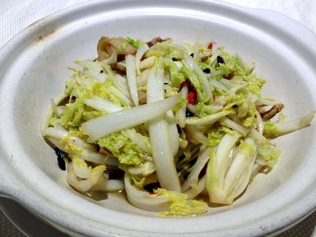 【砂锅娃娃菜】28元一份,比一般吃的砂锅大了好多,份量真不少,放了少许豆豉。娃娃菜的味道挺不错的,五花肉好像后炒的一样,淡而无味。吃到底下油有点大,微微辣。
