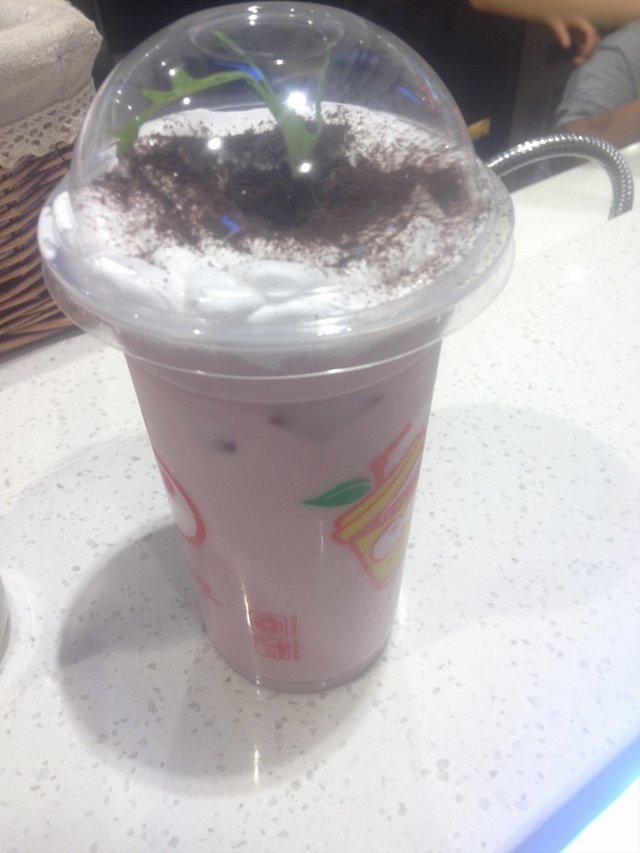 漂亮的盆栽奶茶 我爱吃大琪琪等级42014-08-197 浏览 关注 和朋友在乐天百货下面吃饭,朋友想喝点东西,又买了这家的饮品。这次点了不一样的,一个紫薯盆栽奶茶,一杯黑珍珠奶茶。紫薯盆栽奶茶给了朋友惊喜,卖相不错,下面是紫薯奶茶,上面一层奶油,再上面是巧克力粉,加上一颗绿色植物装饰,非常像盆栽哦。紫薯的味道很浓,伴随着淡淡的奶的味道,相对而言尝不出茶的味道啦,最后把奶油搅在一起也非常的美味。黑珍珠奶茶味道有一点点淡,不醇厚,但是朋友很喜欢淡淡的感觉。以上食记乃用户个人意见 , 并不代表OpenRice之观点。1分享漂亮的盆栽奶茶 茶物语 https://s.openrice.com/KtLT3m0A1GC00检举 张贴 评分4味道3环境3服务3卫生3抵食用餐途径外卖自取