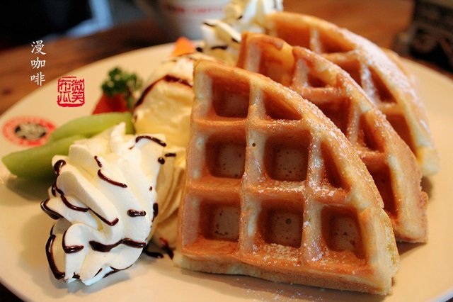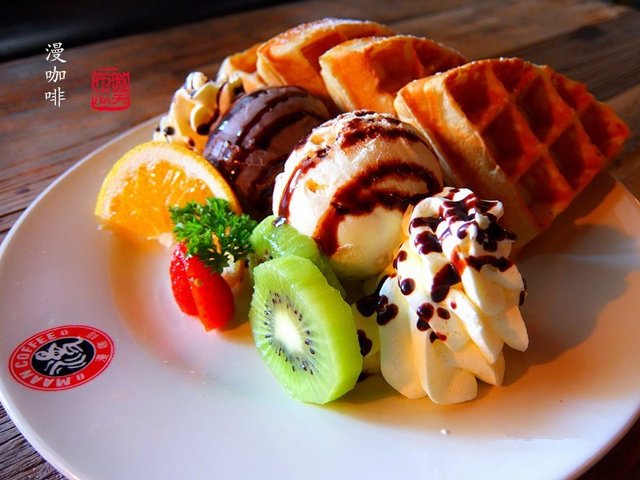 【水果冰淇淋松饼】漫咖啡的松饼还是很好吃的,酥软可口,奶香十足。一般是一个冰淇淋球,又加了一个,后来觉得不合适,单加个球29,还不如直接来个双品过瘾。松饼还是很好吃的,一般都会选这个吃。