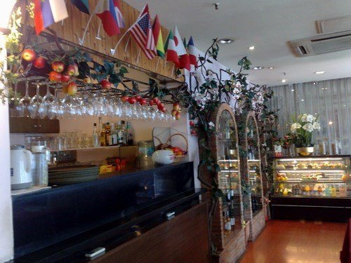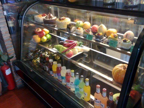 店里面积不大,但是装饰的非常精美这冰柜里五彩缤纷的蛋糕美酒蔬菜水果让人赏心悦目