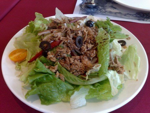 价38元的吞拿鱼色拉:没有色拉酱但是放点酱汁味道也很好,爽口啊!