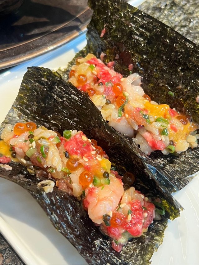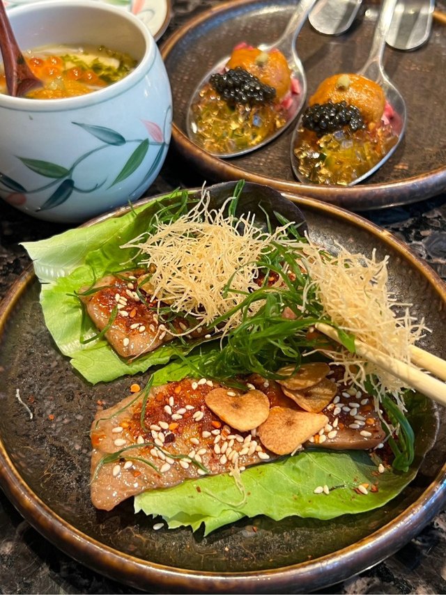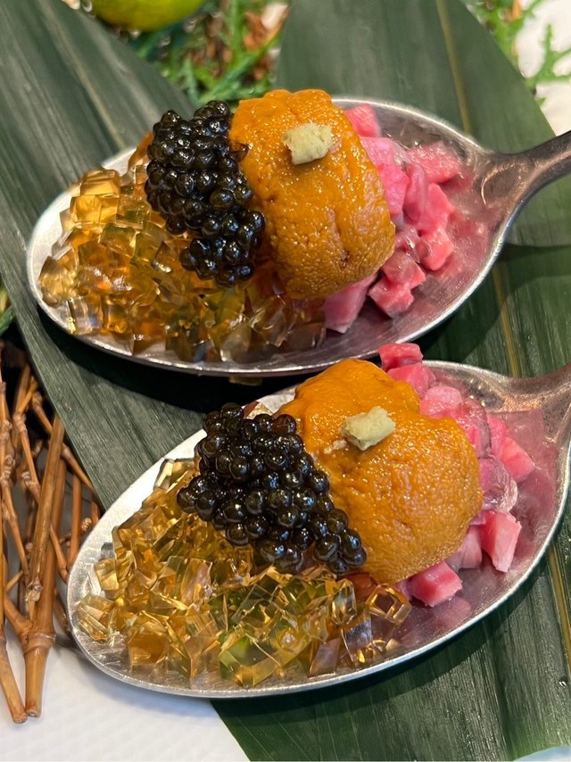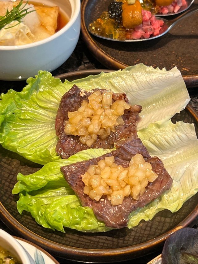 呢個出品非常漂亮,簡直就係藝術品!和牛+海膽+魚子醬,一啖落去香汁四射啊