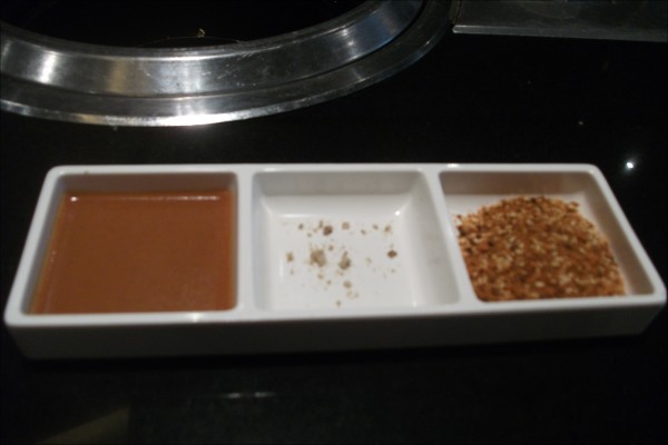 餐前的小料也不错 很喜欢的芝麻辣椒那个