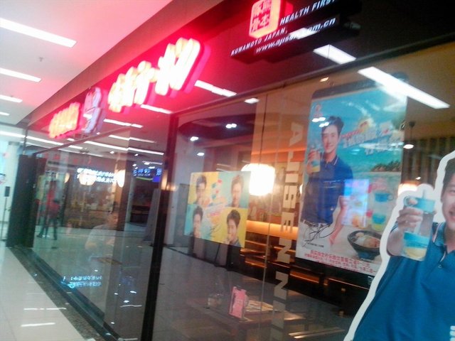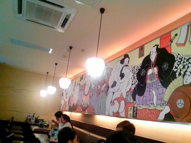 这家店一进门就可以看到柜台,两遍大多是双人的座位,再往里面走是有四人的大桌。我们来的时候就被安排在门口不远的双人座的地方,双人座之间的距离有点紧,隔壁说话声音都听得到,私密性稍微差了一点。店内有一个电视,一直在播放他家代言人朴海镇的广告。然后最近店内正在主打朴海镇代言的套餐,可以送一个柠檬杯。店内日式的装潢,墙上是日本仕女图的样子。