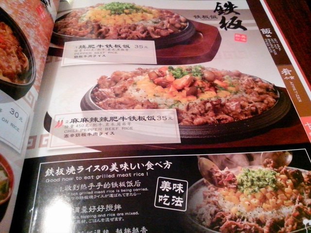 看了看菜单,主食有拉面和饭来量大类,价位大多是三十元上下,感觉小贵哈。小吃大多数都是炸的食物。种类不是太多。菜单上是图文并茂,而且标出了饭食里面的配料,让人一目了然。晚上七点多到的餐厅,里面还是不少的人,大家都是逛街后过来吃东西的吧。我们两个人没有点太多的东西。