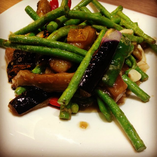 豇豆茄子,味道中规中矩,但是油放太多。