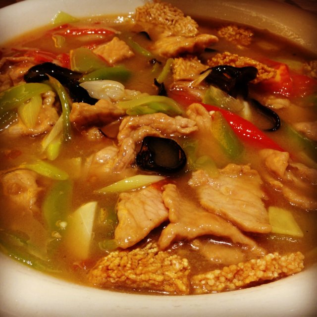 锅巴肉片,甜不啦叽,完全无法入口。
