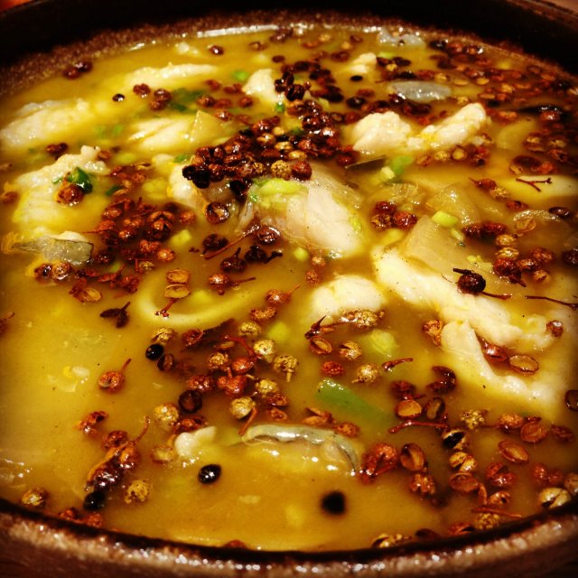 沸腾鱼,58一份,巨难吃,花椒放了一抹多,但是我吃出来的是花椒粉的味道,闻起就像我们家厨房放花椒的抽屉里面的味道。
