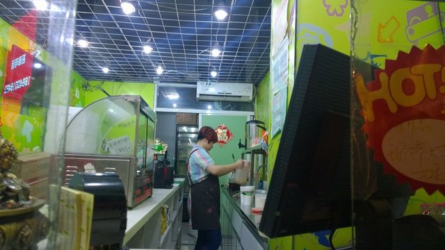 这是在国美前边的胡同的一家小店,店内就一女子,人流不少,感觉有点忙不过来,等的我有些着急,因为人家说啥不要,马上要走,幸好先做了一杯,这样我才安心