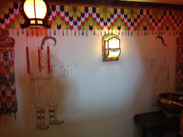 火锅店位于三楼,装修是藏式风格,有点特色,卡座比较有味道,