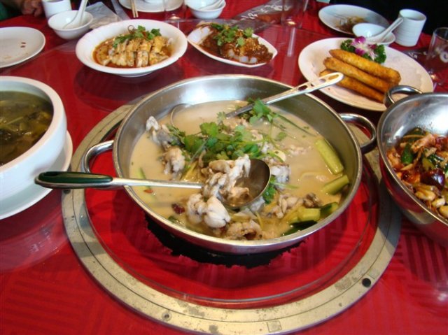 不知从什么时候开始上海开始流行吃牛蛙的,因为朋友过生日,这家店在搞活动就去吃了一次。他们好像经常搞的活动就是牛蛙买三斤送一斤,如果有当月过生日的朋友还可以送一瓶红酒,但是好像这两样活动不能同时参加的。但我们是谁啊,做销售的啊,去的当天有两个朋友是当月生日,我和其中一个女孩子就开始对他们的大堂经理进行公关了。我们当然是赢得了最后的胜利,牛蛙买三斤送一斤,送了两瓶红酒,哈哈。不过说实话味道还真的不错的。我们点的是水煮牛蛙,里面好像有骨头汤的,味道很浓郁,牛蛙个头也很大的,烧的很嫩。牛蛙吃的差不多的时候还可以加配菜就像吃火锅一样了。还点了一些菜。最喜欢的是炸香蕉。还有一些菜叫不上名字,但是都还可以。当时是9个人左右花了不到四百元。