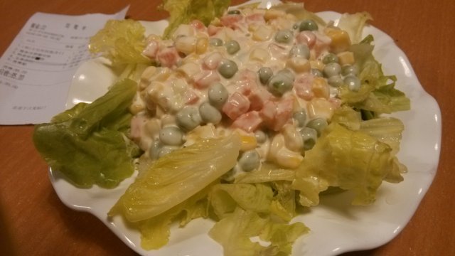 【玉米沙拉】比较一般,虽然分量不少,但是玉米感觉有点偏老,所以不够嫩不够甜,青豆也是,不够软糯;