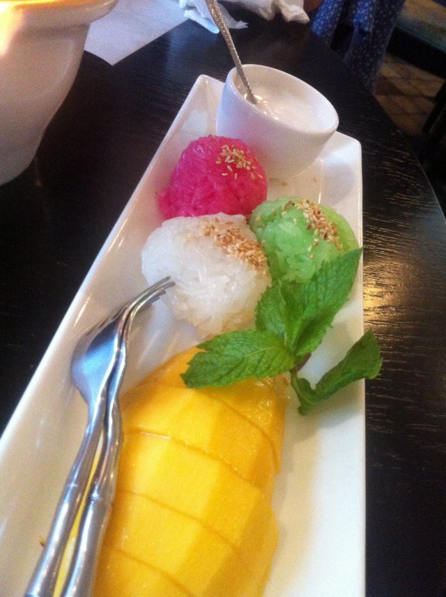 甜品啊~每一份幸福的晚饭之后怎么可能少了它呢? 三色糯米配芒果(好像是这个名字)