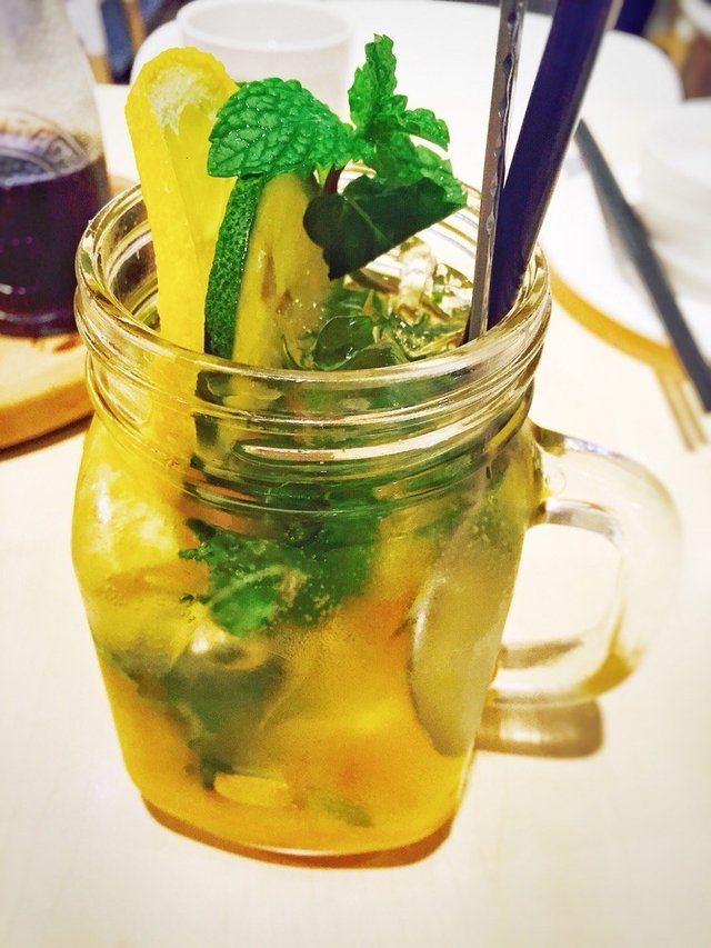 菜式在传统基础上都有改良,都市轻食主义,印象最深的就是那个鲜橙抹茶冰淇淋猪仔包,配色肥肠夏天萌,猪仔包就是充当了吐司角色,然而味道却十分平淡。