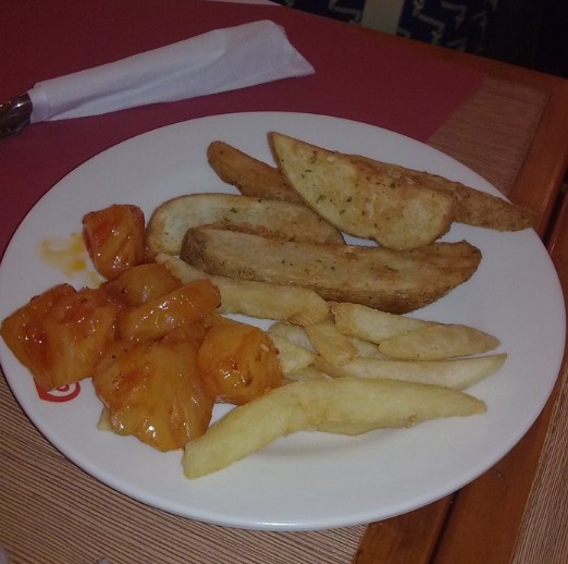 @这里有肉串啦,鸡米花啦,薯格啦,有很多油炸食品,一来我们就搞了好多这种,活活,虽然这些油炸食品吃太多不好,但是还是挺喜欢的~~~味道么一般性。