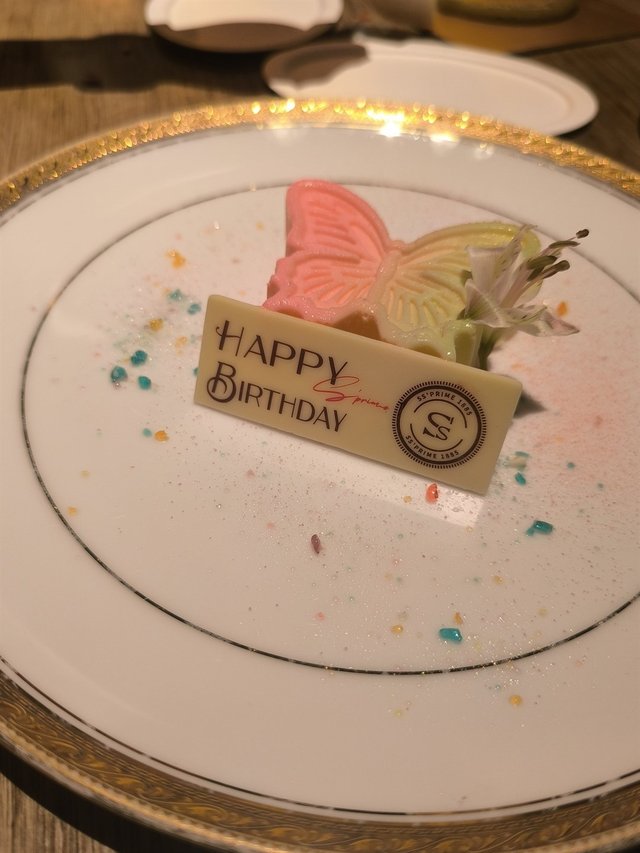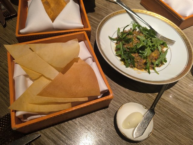 我們一行五人被安排中形半圓卡座位,檯也不算太大. 我們叫了四人餐有前菜(麵包,和牛他他,焗法式田螺,大大塊的斧頭扒,炸海鮮拼盤,手工Pizza,甜品是tiramisu. 還有,餐廳準備的小蛋糕.