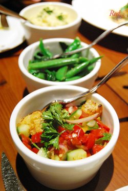 玉米糊、 面包色拉、炒菠菜,作为配菜却被单独装盘呈上,这也是larder餐厅的特别之处。