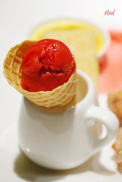 脆皮烤乳鸽配葡萄干,香菜和腌茄子,在粤菜里很常见的脆皮烤乳鸽跑到了西餐的菜单里,让人忍不住想一尝究竟,口味上延续了粤菜做法上皮酥肉嫩、鲜香味美的特点,只是配料里的葡萄干和腌茄子带给我不小的惊喜。