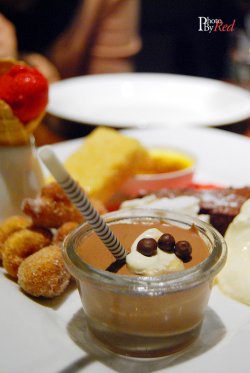 拉德拼盘,不同于常规的西餐厅,larder更像是在家中用餐,多款菜品可供好友间分享这款甜品就是其中之一,由巧克力蛋糕配太妃和梅子果酱、法式马斯卡布尼布丁、巧克力慕斯、马蒂尼杯式蛋糕、迷你甜甜圈、百香果棉花糖组成,和餐前面包一样,在甜品上也很花心思,小巧精致的外观,甜度适中的味道及软糯的口感,尝过之后让人心情愉悦。