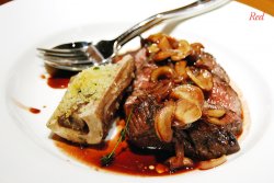 碳扒牛腩排配雷斯红酒酱汁,牛骨髓,搭配红酒能充分地领略澳洲牛腩排的鲜嫩肉质和主厨传统烹饪的精华。