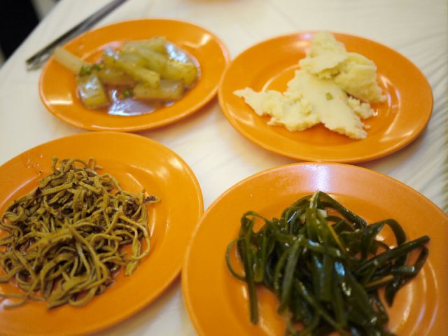 这里有积分卡,可以积分换绿豆沙和肉什么的餐前就有小菜赠送,这次去送的是豆腐丝、海带丝、土豆泥和肉皮冻