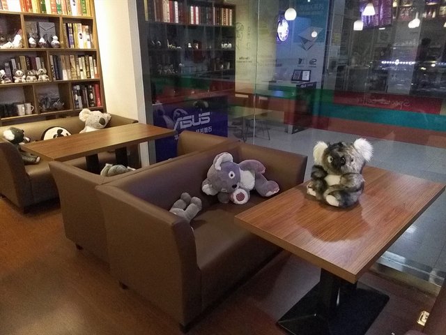 店长是个相当喜欢树懒和马克杯的人呢,大大小小的树懒公仔到处都是,放在沙发、柜台等各个角落,蛮可爱的。