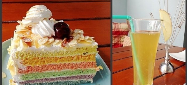 彩虹蛋糕是这家的当家主打。但是它真的就只是看着很美,吃起来很平庸。