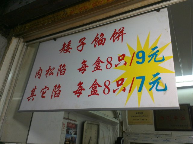 矮子家的馅饼的外皮比较松软,里面的馅料,椒盐的很香,绿豆的很柔,不过作为忠实的肉食动物的我,还是比较喜欢肉松味道的,是香甜的。