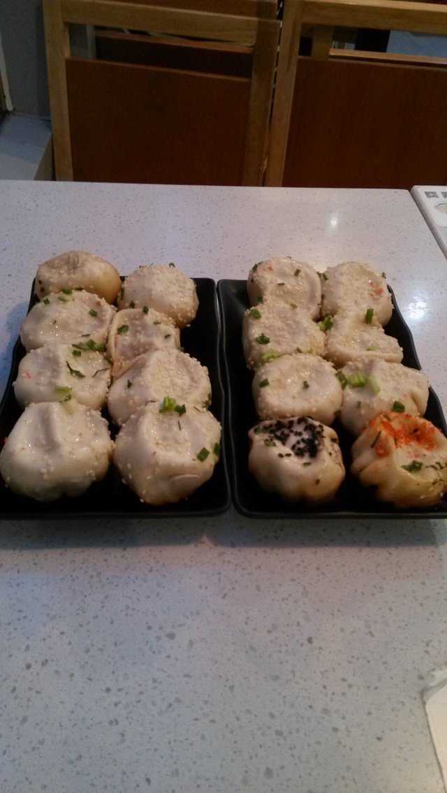 生煎不是刚出炉的,但味道还是不错的,里面汁水不少,可惜有几个皮破掉了,汁水有点漏掉了,味道稍微差了些。吃到一半时人多了不少,收银台那里排着长队,生煎出炉时服务员会叫大家去排队领生煎的,刚出炉的味道肯定很好,可惜去早了。