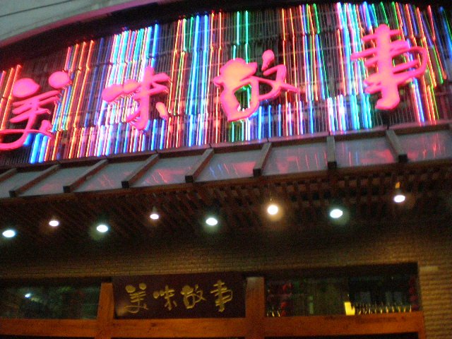 先看看门脸。天已经黑下来了。这招牌背景灯,闪就闪吧,为什么要发出响声?