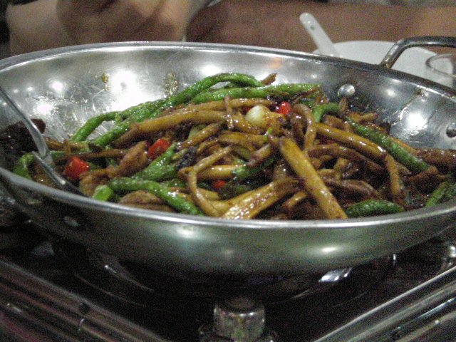 干锅豆角。不知道这回的菜怎么都点的那么素,里面真的好像没有看见肉,金针菇和洋葱倒是不少。吃干锅,没有油,很难办的。