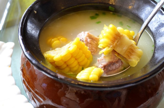【玉米排骨汤】加的天玉米,还有质量较好的签子排,没有吃,就喝了一碗汤,一般。