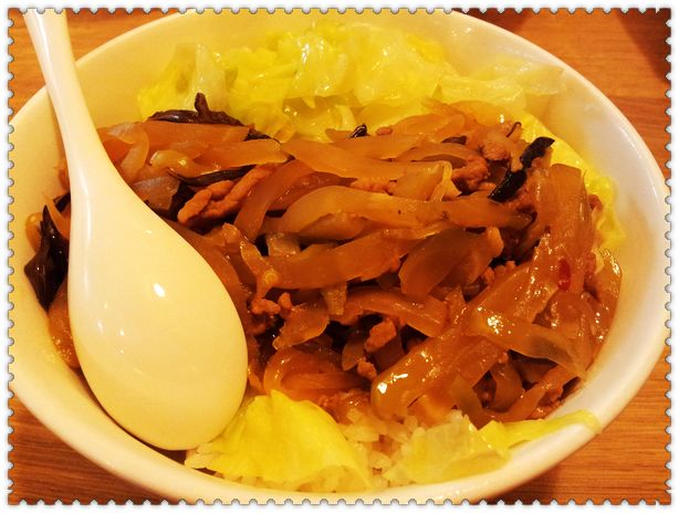 烧卖,一笼6个,才9元,挺实惠的~ 味道是偏甜的,糯米的馅料油润润的,浸着肉香~ 一般我都会再配一份大拌菜,6元,荤素搭配,很不错哦~