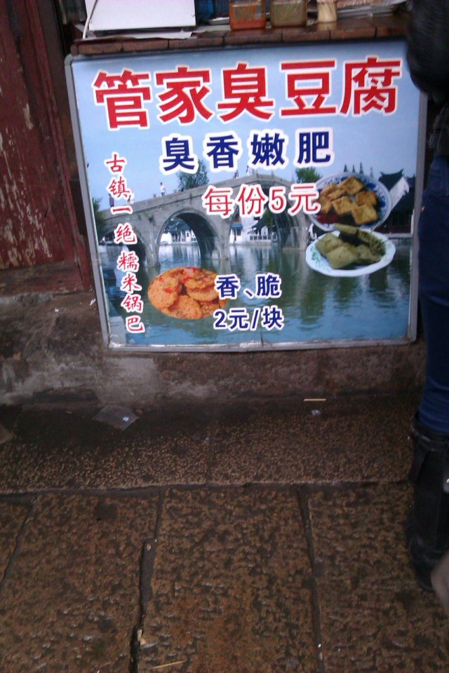 管家臭豆腐 annzhou88等级42013-04-0510 浏览 关注 在朱家角有很多臭豆腐摊头 这家 管家臭豆腐 占领了良好的地理位置 就在大桥下来就看的到 老板应该就姓管吧 管师傅很会吆喝 ,还有麦克风帮忙 周围路过的人闻到香味也会来试一试 价格是5元是6块 浆料有甜面酱和辣酱两种 管师傅说要2个酱合起来吃才好吃 味道不错以上食记乃用户个人意见 , 并不代表OpenRice之观点。赞好分享管家臭豆腐 管家臭豆腐 https://s.openrice.com/KtLT1009lK400检举 张贴 评分4味道4环境4服务3卫生4抵食