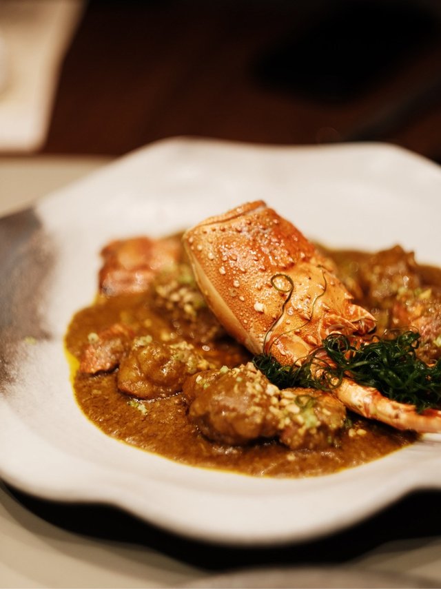 最后的主食以焖饭呈现,有饱满米香,“浇头”是贝类,拌入饭中裹起米粒而米香不散,厚实弹牙的质感焖炖入味,入口胶糯饱满,一碗米饭便又从平常朴实升华至高级。甜点则是一道水果,风物甘美甜润,便抚平了一餐里留下的所有热燥与厚重。