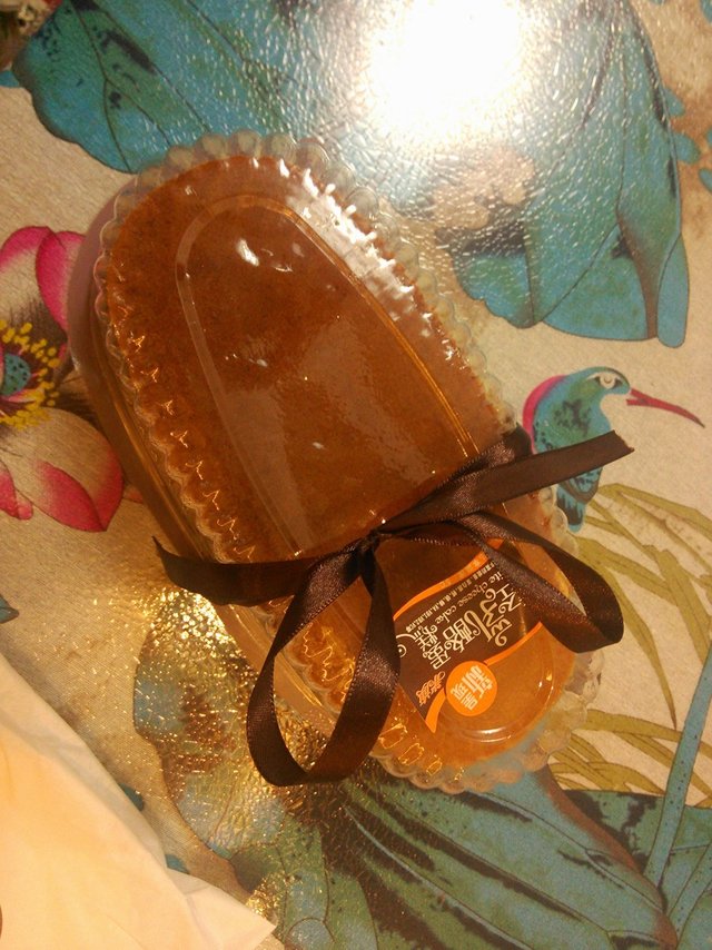 上面有一层蜂蜜一样的糖浆,甜甜的,非常好吃的一款蛋糕。