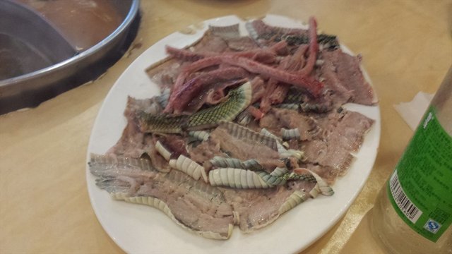 可能因为我们点错顺序了,所以并不觉得又什么好吃的~照考拉看来,蛇是应该最先点下锅,把汤头熬出来才会鲜美,可是我们最后快吃完又加点了一个蛇有点失去意义的味道...乌梢蛇本身肉就不是很多,不吃味道光吃肉的话就只有啃骨头的感觉~就蛇着东西,考拉更爱椒盐或美极大黄蛇这种啖啖肉的吃饭。