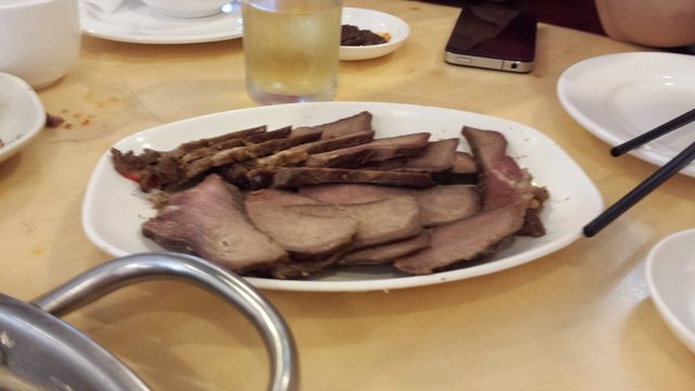 热气羊肉吃的多了,第一次吃热气牛肉,的确美味~牛肉色泽鲜艳,牛筋夹杂在肉里,可见是牛腱肉。入锅稍微涮熟,沾上他们家唯一的蘸料沙茶酱,微甜的口感,牛肉带筋而且新鲜,很有弹性!