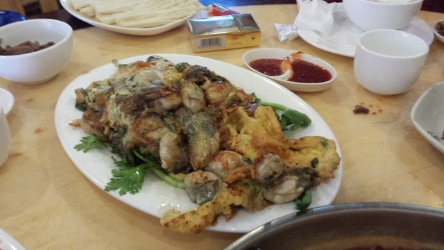 有史以来看到过最霸气的煎蚝烙!那蚝大是大的来...最下面铺着生蔬菜吸油,上面就是煎蛋裹着蚝,蚝很新鲜,有种鲜甜的口感,这么大个还是很嫩,就是样子有那么点...难看