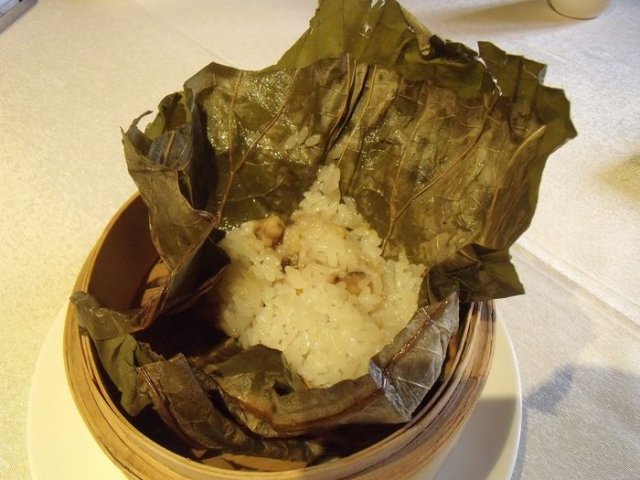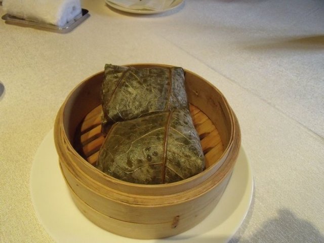 糯米荷叶鸡:广式点心中不可或缺一道传统点心,外表看着平淡无奇,打开后也是白色糯米并无亮点,入口方知奥妙。糯米吸饱了足够的水份,带着鸡肉的芳香;鸡肉伴随着米香没有了平时的油腻多了一份清爽,其中搭配香菇更是提升了香味,三者融为一体。甚妙!