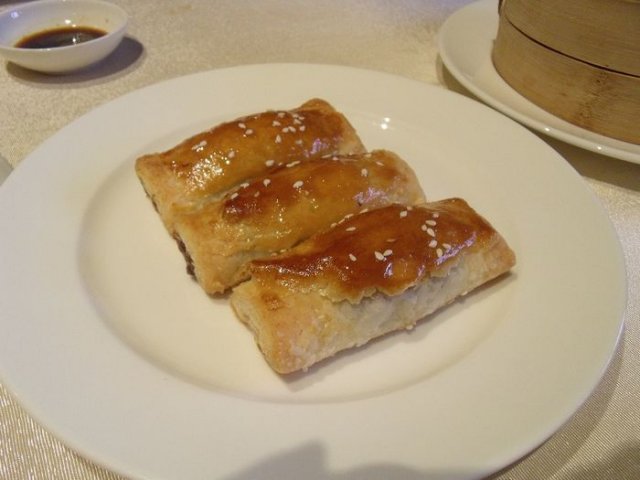 香麻叉烧酥:这个也是广式点心的一个特色了,看上去可能没有什么大的惊喜,但是一口下去才知道,酥皮做的油而不腻,软硬适中,里面的叉烧也控制很好,不干不湿,配合着外面的酥皮,真是香中带甜。
