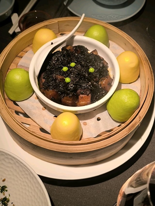 梅干菜紅燒肉 ~ 梅菜紅燒肉偶爾去客家菜館也會食.但是今次絕對是升級華麗版本😆擺盤賣相配上黃黃綠綠的包子夾在一起食很好, 可以減少紅燒肉直接入口的肥膩.