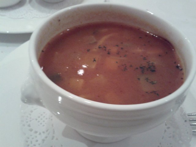 汤,意大利蔬菜汤口感跟纯番茄汤差别不大,奶油南瓜汤到很香甜,不腻