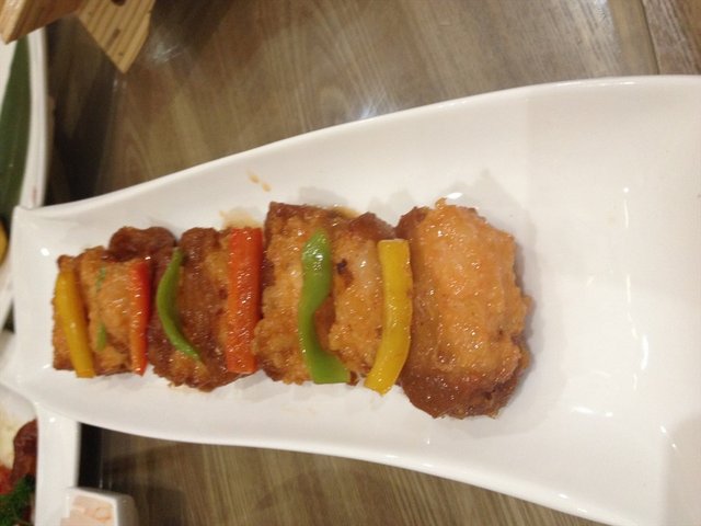 这个一定有人没有吃到的,不过我还是吃了,甜口的,感觉排骨不够软烂,或者说不太下手好啃,自家人吃还好,宴请不适合点,影响美女吃相