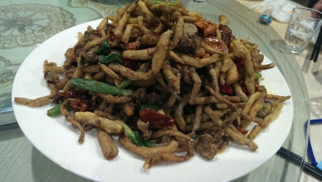说菜:菜量还真挺大,我们一桌人十个菜愣是没吃了;按印象最深往下排列: