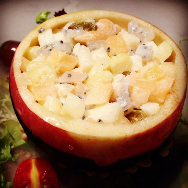 里面灯光昏暗,感觉在吃黑暗料理。服务还行,但是这儿居然没有手机充电器。