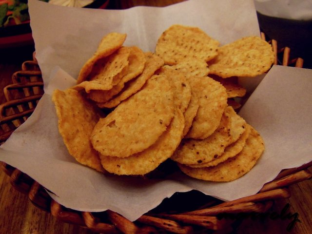 里面的玉米片,很薄很脆,不沾酱吃,没味道也没香气。