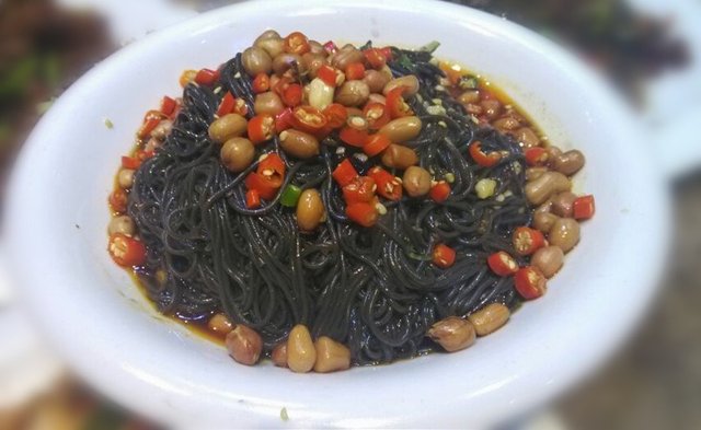 虽说是凉菜,但比起其他家来说,真的分量很足。这道菜上边是蕨根粉,下边是黄瓜丝,吃起来特别辣,蕨根粉也入味,总之很赞。