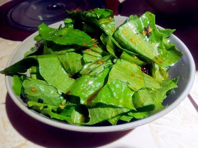 冷菜选了炝拌油麦菜:一般在外常吃的都是麻酱油麦菜,感觉有些腻,炝拌的很好次,有点辣辣的,还有些酸酸的口味,吃起来很清爽。推荐哦~·