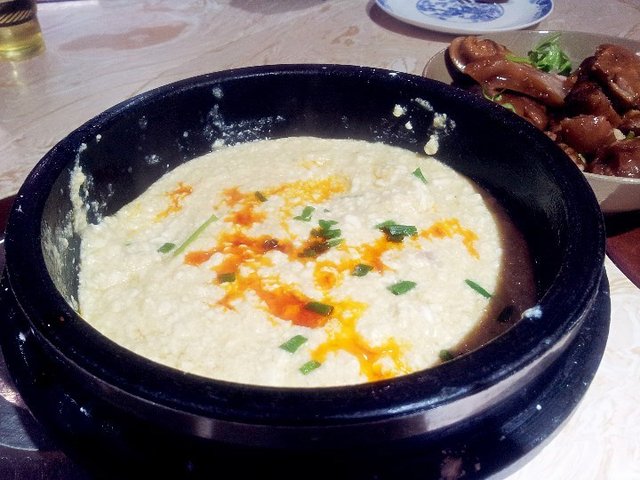 其他还点了石锅豆花:这个超级好吃,强烈推荐,几乎每桌必点,也算他家的招牌菜了,趁热吃最好不过了,豆花口感很细腻,里面还加了其他的食材,不过没吃出来是什么,饭前先喝一碗热热的豆花暖暖胃很不错哦~